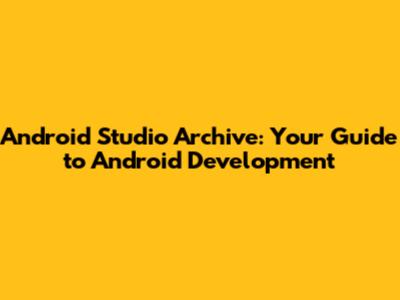 Android Studio Archive: Your Guide To Android Development