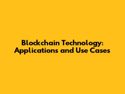 Blockchain Technology: Applications And Use Cases