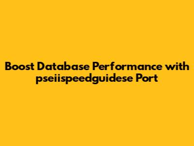 Boost Database Performance With Pseiispeedguidese Port