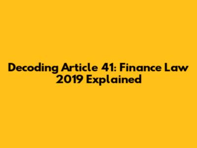 Decoding Article 41: Finance Law 2019 Explained