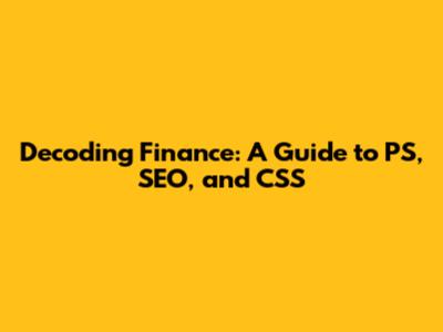 Decoding Finance: A Guide To PS, SEO, And CSS