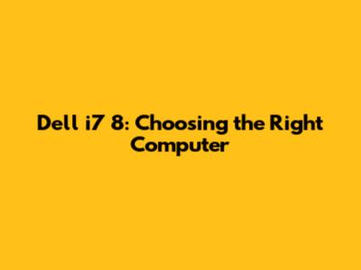 Dell I7 8: Choosing The Right Computer