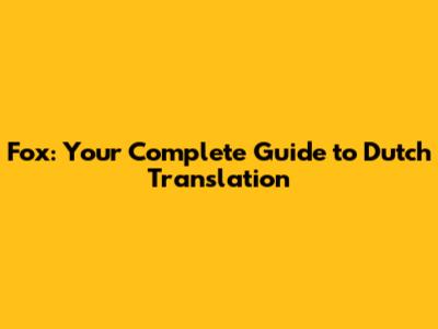 Fox: Your Complete Guide To Dutch Translation