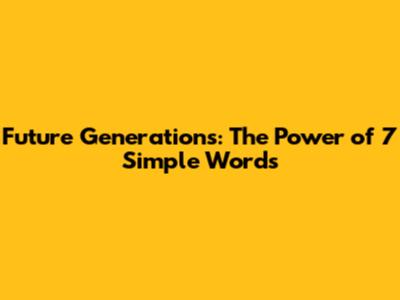 Future Generations: The Power Of 7 Simple Words
