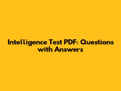 Intelligence Test PDF: Questions With Answers