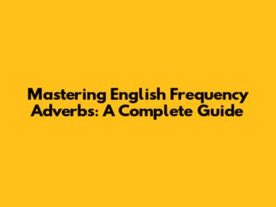 Mastering English Frequency Adverbs: A Complete Guide