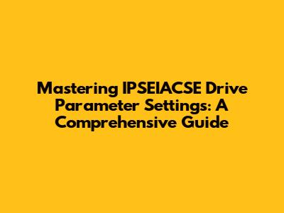 Mastering IPSEIACSE Drive Parameter Settings: A Comprehensive Guide