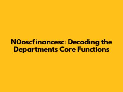 N0oscfinancesc: Decoding The Department's Core Functions