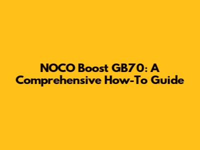 NOCO Boost GB70: A Comprehensive How-To Guide