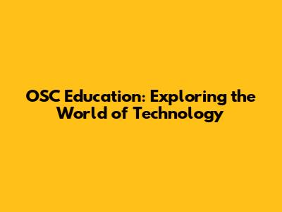 OSC Education: Exploring The World Of Technology