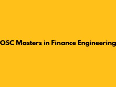 OSC Masters: Finance Engineering Excellence