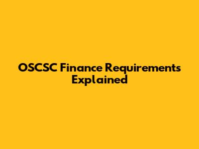OSCSC Finance Requirements Explained