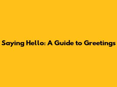 Saying Hello: A Guide To Greetings