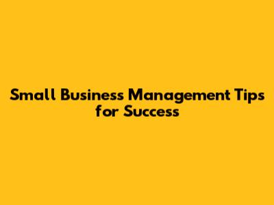 Small Business Management Tips For Success