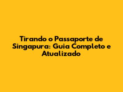 Tirando O Passaporte De Singapura: Guia Completo E Atualizado