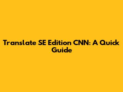 Translate SE Edition CNN: A Quick Guide