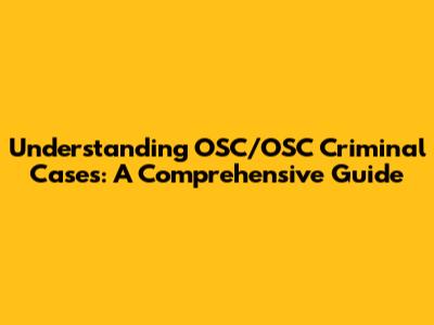 Understanding OSC/OSC Criminal Cases: A Comprehensive Guide