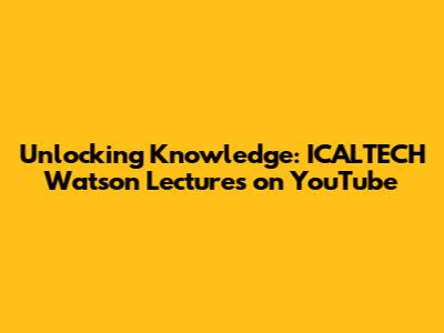 Hey tech enthusiasts and knowledge seekers! Ever stumbled upon a treasure trove of insightful lectures that just blow your mind? Well, today, we're diving deep into the world of ICALTECH Watson Lectures on YouTube. We'll explore why these lectures are a must-watch, who should be tuning in, and how you can get the most out of them. Buckle up, because we're about to embark on a journey filled with cutting-edge technology, brilliant minds, and a whole lot of learning.