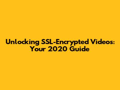Unlocking SSL-Encrypted Videos: Your 2020 Guide