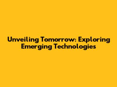Unveiling Tomorrow: Exploring Emerging Technologies
