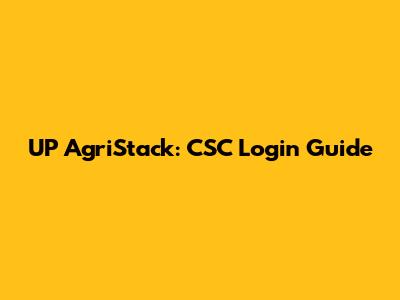 Step-by-Step Guide to UP AgriStack CSC Login