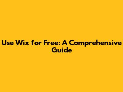 Use Wix For Free: A Comprehensive Guide