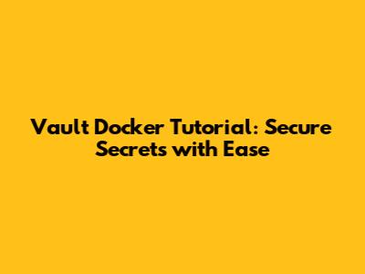 Vault Docker Tutorial: Secure Secrets With Ease